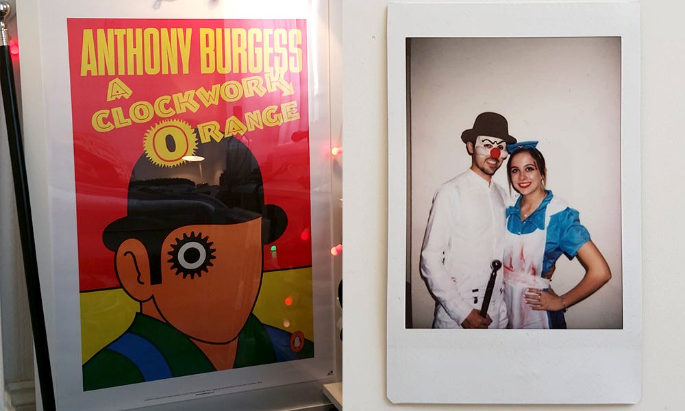 After reading the book, I revisited the film, and a love for the aesthetic and imagery of both grew within me. The cover of the book leaned framed against my wall, which I eagerly picked up in a local bookshop, and I even made an Alex costume from scratch, ordering all the individual pieces (including a handmade mask) online, combining them together into what I thought was the best Halloween costume one could wear (yes I was inspired partly by Bart Simpson). The mask, eyeball cufflinks, suspenders, and appropriate jockstrap being the most challenging things to find, with the chef trousers, grandfather shirt, bowler hat, cane, and German army boots being the easiest, thanks to eBay. I ended up using the costume two years running, and on the second, having travelled to London for a Halloween night out, my now wife, her friend, and her boyfriend ended up getting attacked in the club we were in, which looking back, seems comically appropriate, considering my dress. It started because our friend inadvertently got served before someone else, and that someone else had an unhinged partner who started throwing punches about upon hearing that this shocking event had taken place. Madness. Anyway, we left the club early and got some fried chicken, so Alex had to sit in a brightly lit fast-food joint with a bloodied (not from the fight) nurse, a witch, and a zombie - strange night… should have ended it with a glass of milk.