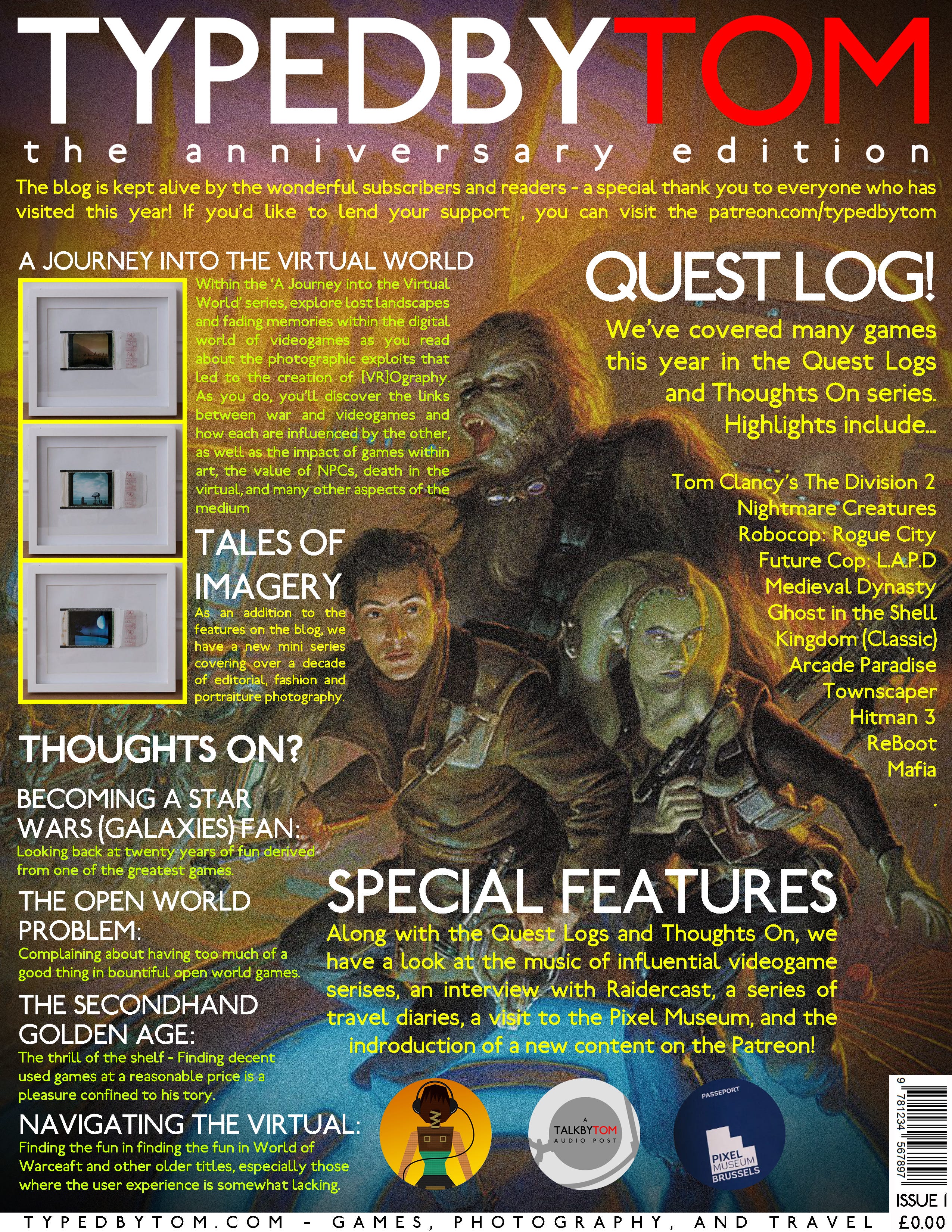 Anyway, on to the main point - a year of TYPEDBYTOM. There are now 42 posts (including this one) on the blog, totalling over 80,000 words. Some posts vary in their readability, but hopefully most of them are worth at least flicking through! After a year of writing here, I’ve almost got enough content to create a (thin) magazine, so here we go, the first annual release of the TYPEDBYTOM mag! I’m only going as far as the cover, just to summarise things, and also because making an actual magazine sounds dreadfully stressful - you can just imagine the rest haha. Also, as you can see, it’s a cluttered mess, so an entire magazine would be an eyesore. Hereafter is a list of this past year’s posts, perhaps you missed some, or perhaps you’d like to revisit? Either way - they’re all here in one place! I didn’t actually use this amazing piece of work by Donato Giancola in my Star Wars Galaxies post, but after having listened to lots of episodes of The Back Page Podcast (give them a listen by the way - excellent stuff), I’ve learnt that putting Star Wars on the cover of something is a sure fire way to success - and to be fair, I have mentioned Galaxies quite a bit this past year.